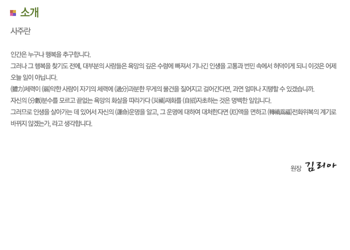 주소 : 경기도 화성시 봉담읍 동화새터길 55-39 신동아파밀리애 102동 1101호ㅣ 院 長 : 厦贇 金 利 娥